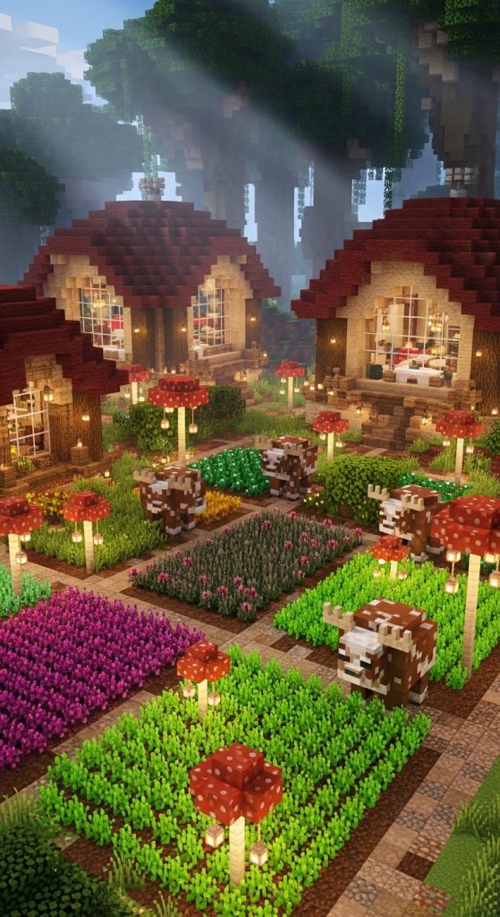 Luxury cute Minecraft farms turn survival mode into an aesthetic adventure. Whether you prefer pastel cottages, floating islands, or enchanted mushroom valleys, the goal is the same — create a farm that makes people stop and say “Wow.”
