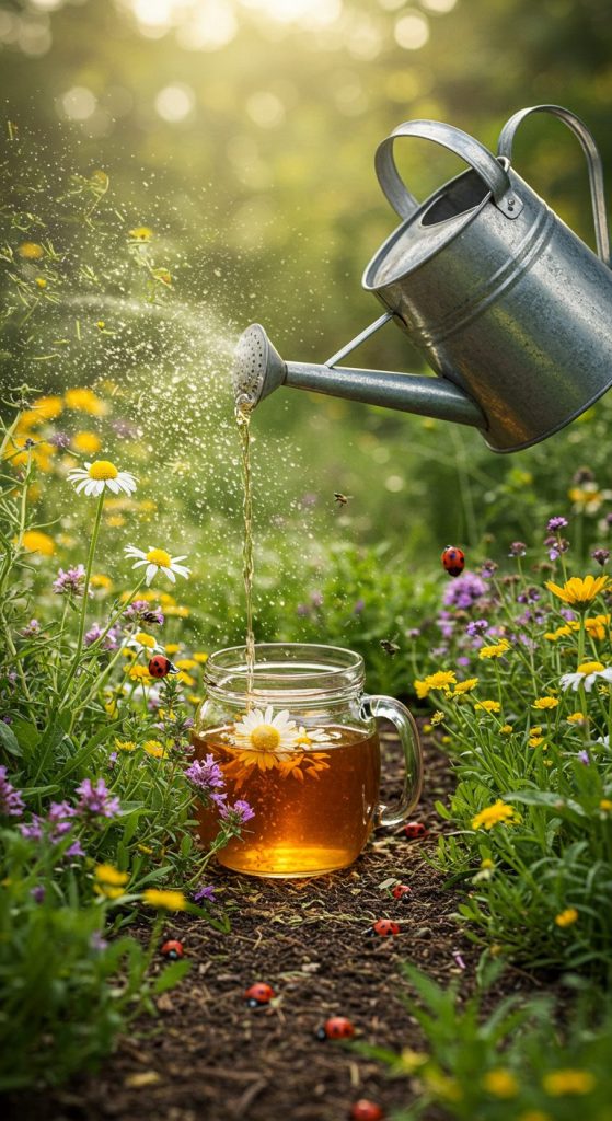 - Herbal tea: Watering plants with brewed herbal tea.