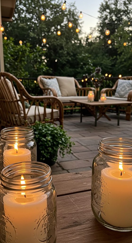 - Citronella candles: Cozy patio with flickering candles.