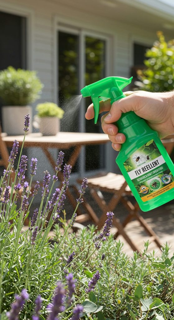 Why it works: Both lavender and eucalyptus oils are natural insect repellents. When sprayed around your outdoor area, they create a fragrant barrier that flies dislike.