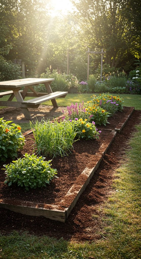 - Herb garden: Potted basil and mint with a picnic.
