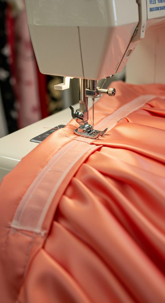 - Sewing a support panel into a dress