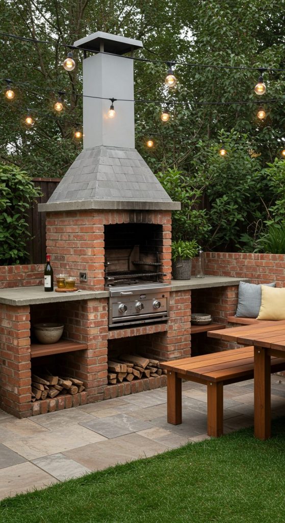 1. Classic Brick BBQ Station with Built-In Seating