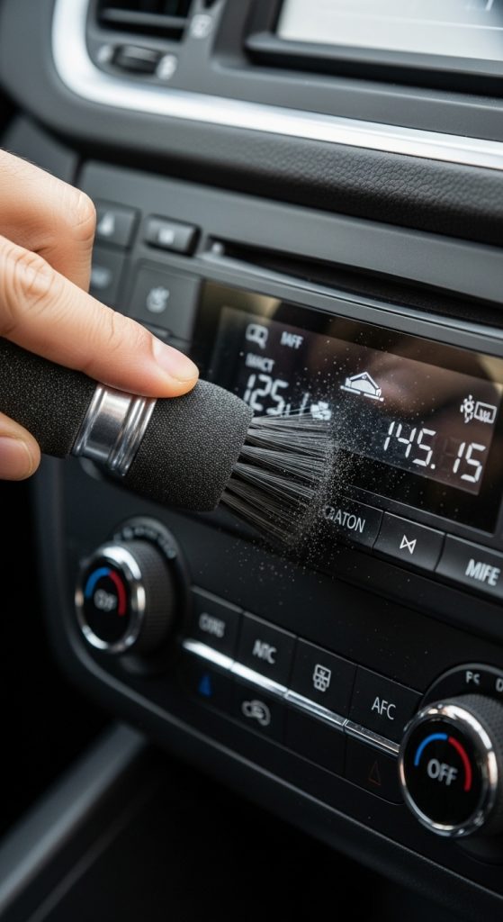 Tiny spaces between vents, buttons, and seams can be hard to clean. A small foam paintbrush or makeup brush reaches into those tight spots and sweeps out dust like magic.