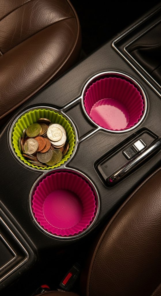 Cup holders are crumb and spill magnets. Line them with silicone cupcake liners for easy cleaning—just pop them out and rinse!