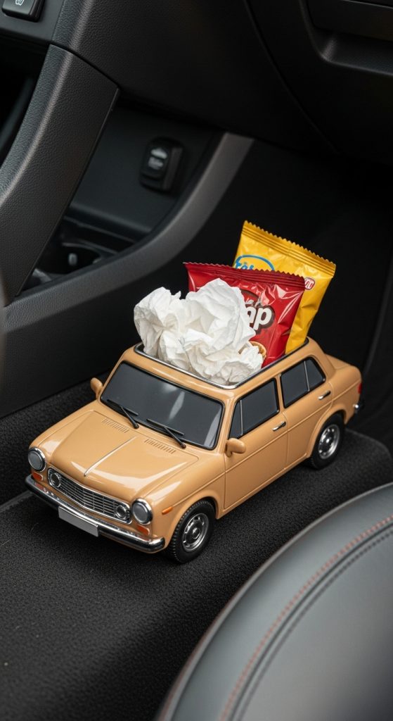 Prevent car messes from happening in the first place! Keep a small lidded trash can or even a plastic cereal container lined with a bag for easy disposal on the go.