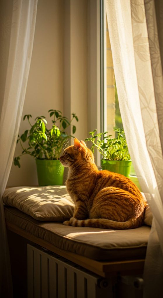 Utilize window spaces by installing a cozy perch beneath the window, allowing your cat to observe the outside world.