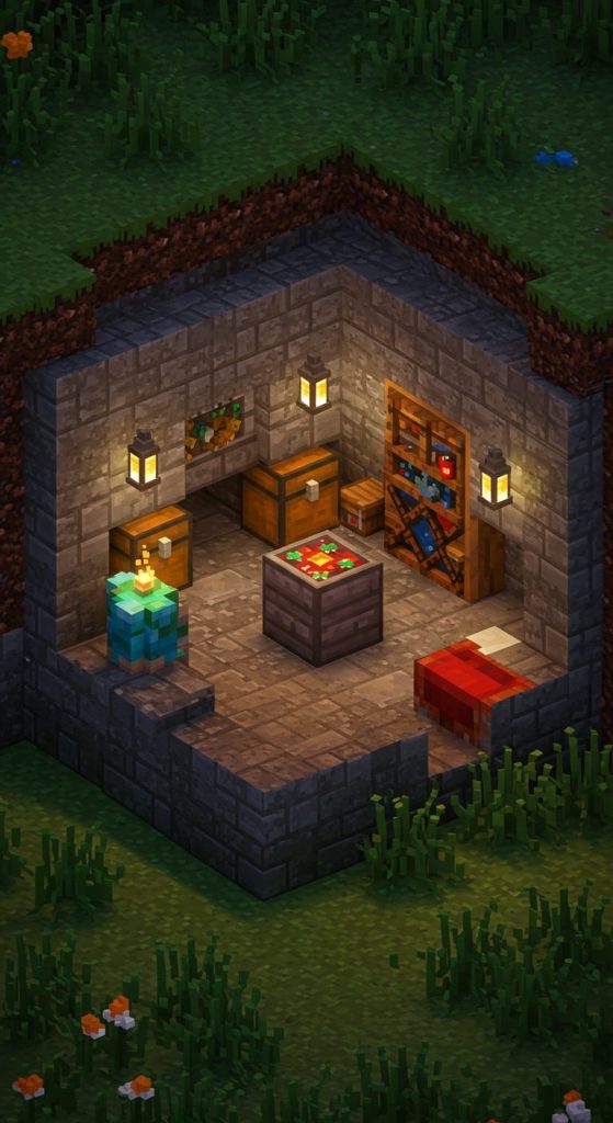 A stealthy, space-efficient home built below the surface, ideal for survival or hiding from mobs.