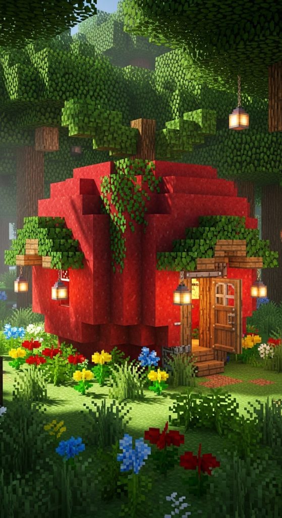 Apple Starter Houses bring charm, color, and creativity to Minecraft survival gameplay. They stand out from traditional wooden cabins while remaining compact and functional. Whether you prefer a cozy cottage, magical fairy home, or giant apple mansion, these builds let you express personality from your very first night in the world.