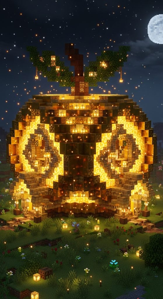 Inspired by the rare enchanted golden apple, this build transforms your starter base into a treasure. Construct the apple shell using yellow concrete, honeycomb blocks, or gold blocks (if you want a luxury flex).