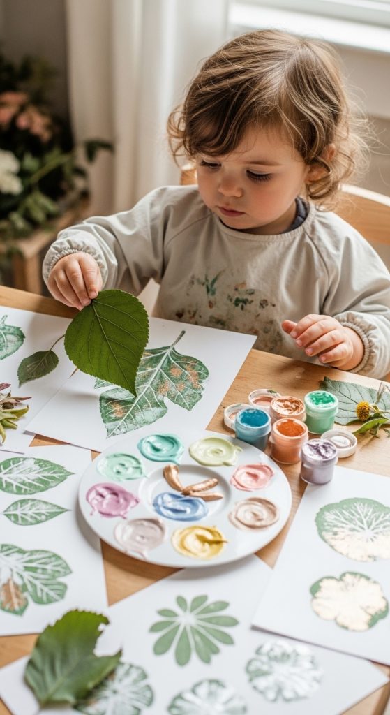 Collect leaves, flowers, and twigs from a garden walk. Use them as stamps or stencils with paint to create elegant nature-inspired prints. Enhance prints with metallic or pastel accents for a luxurious aesthetic. Toddlers learn about shapes, patterns, and the beauty of the natural world.