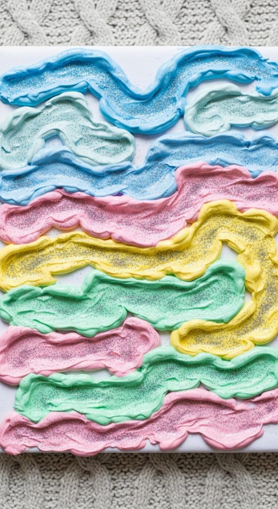 Why it’s amazing: Safe, edible, and sparkly—this craft makes sensory play extra luxurious.