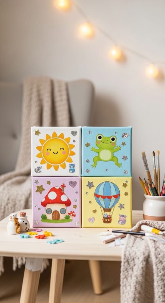 Create keepsake-worthy art using toddlers’ handprints. Dip their hands in safe, non-toxic paint and press onto a canvas or sturdy paper. Add metallic accents, small gems, or sparkly stickers around the prints. This luxury craft doubles as a lasting memory and decorative artwork for your home.
