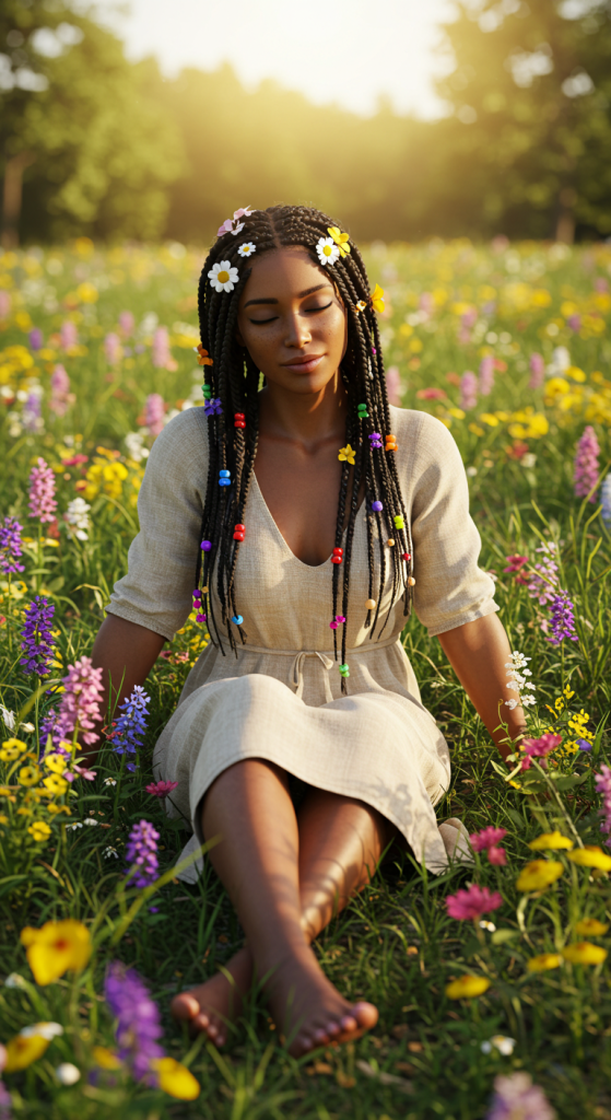 Description: Long, multi-layered braids emblematic of the hippie movement were a free-spirited hairstyle choice in the 1970s. They often included beads and flowers woven into the plaits.