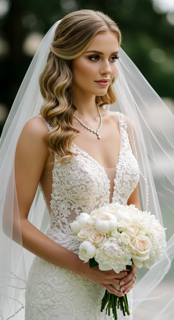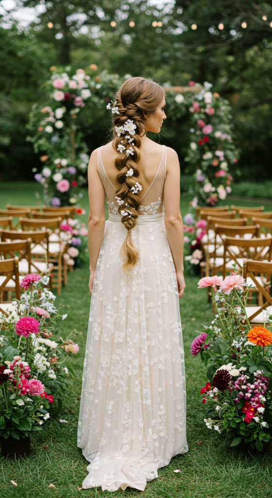 A braided crown gives a regal touch to your bridal look. Braid sections of hair along your hairline and pin them in place, creating a halo effect that pairs beautifully with a flowing gown.