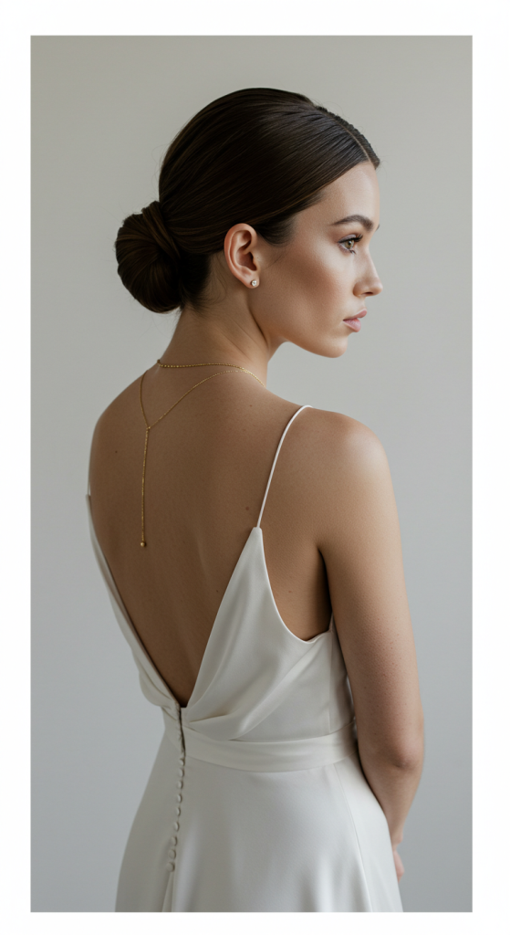 For a simple yet sophisticated style, an elegant side knot can be ideal. Gather your hair to one side, twist it, and secure it into a knot, perfect for showcasing your bridal necklace.