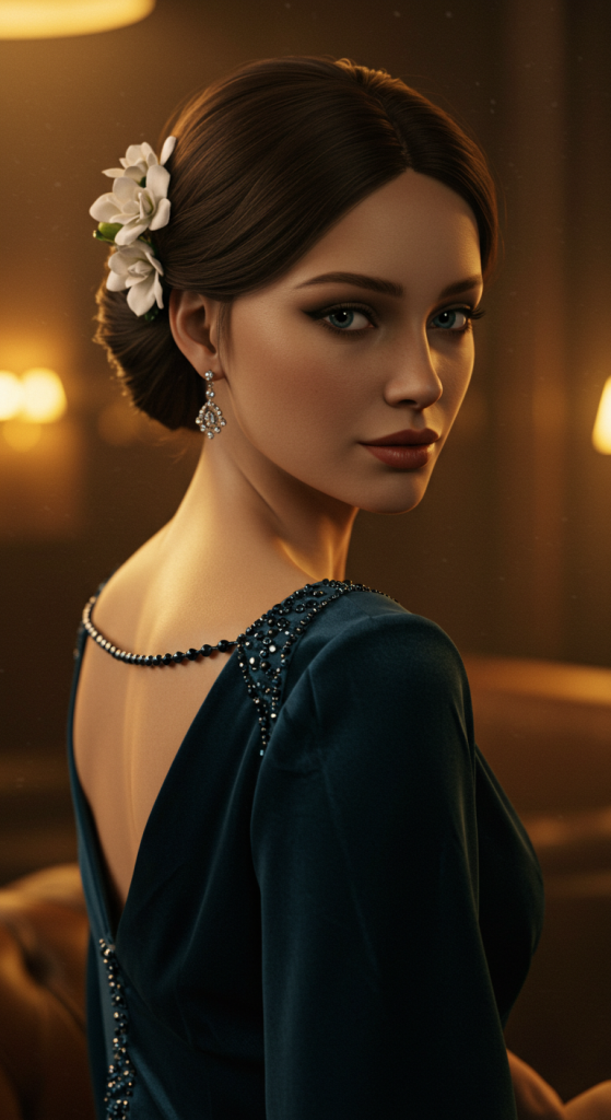 Description: Side-swept hair adds drama to your look, creating an opulent and elegant silhouette. Pair it with a sparkling hair accessory for a perfect finishing touch.