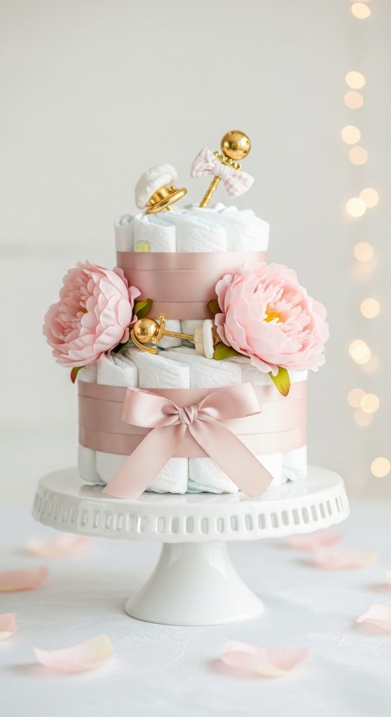 6. 🌸 Floral Diaper Cake Centerpiece