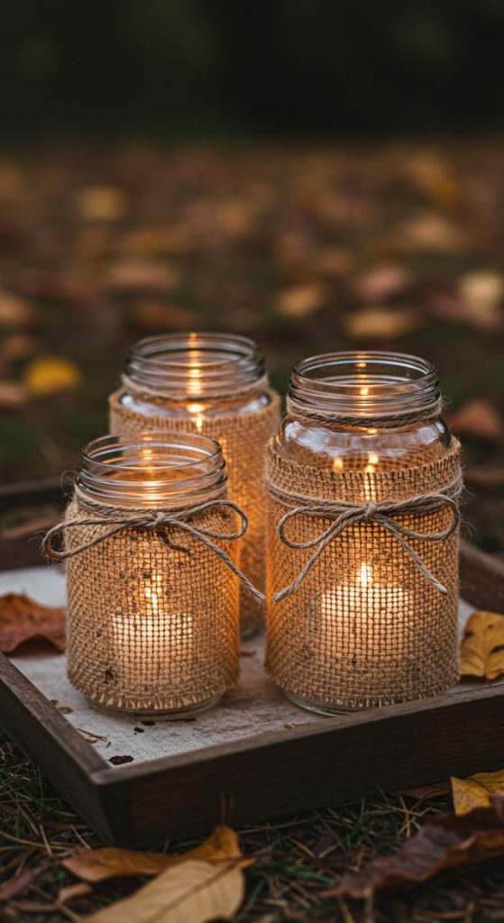 4. Rustic Burlap-Wrapped Lanterns